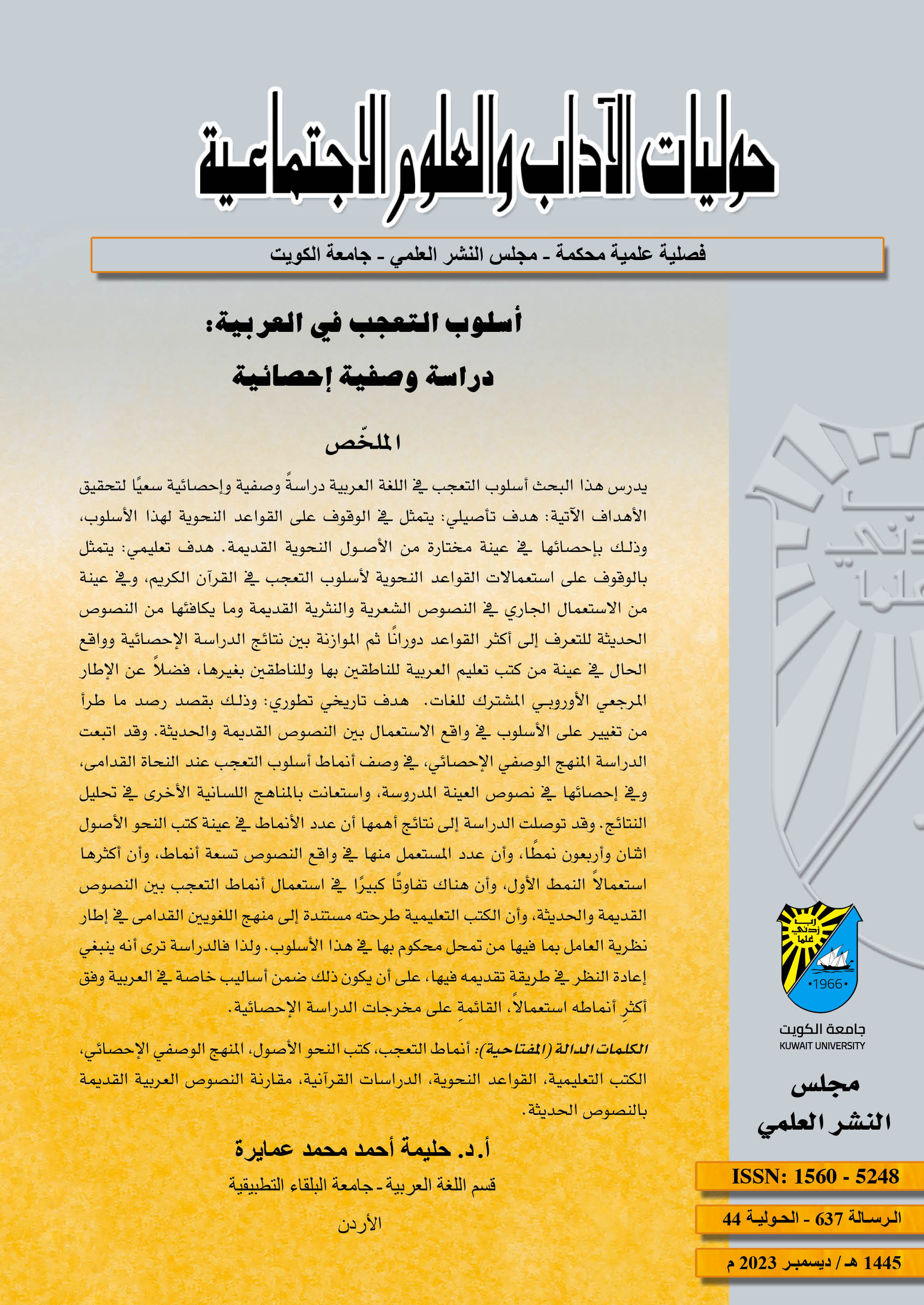 أسلوب التعجب في العربية: دراسـة وصفيـة إحصـائيـة