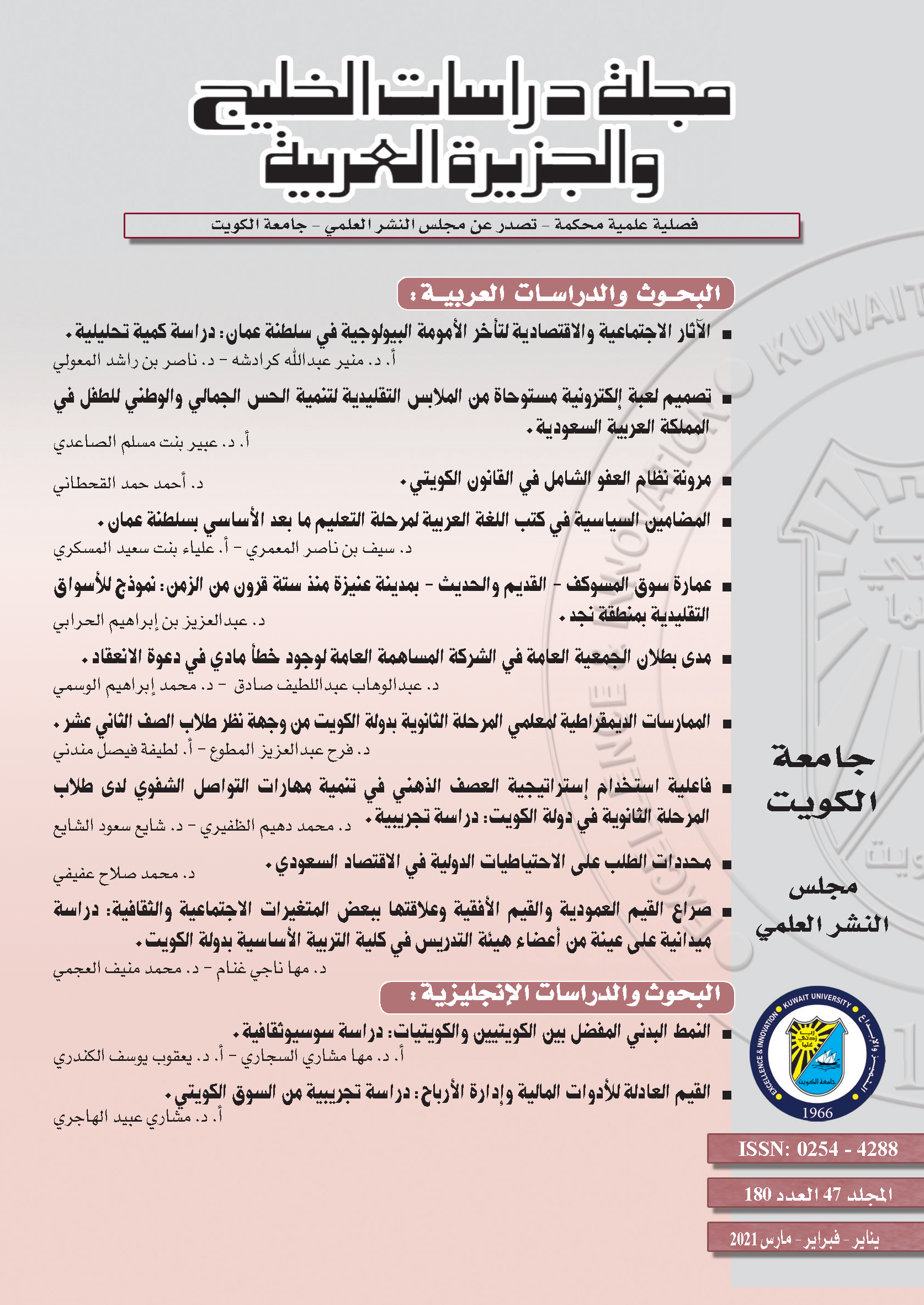 حقوق النشر محفوظة لمجلس النشر العلمي/جامعة الكويت.