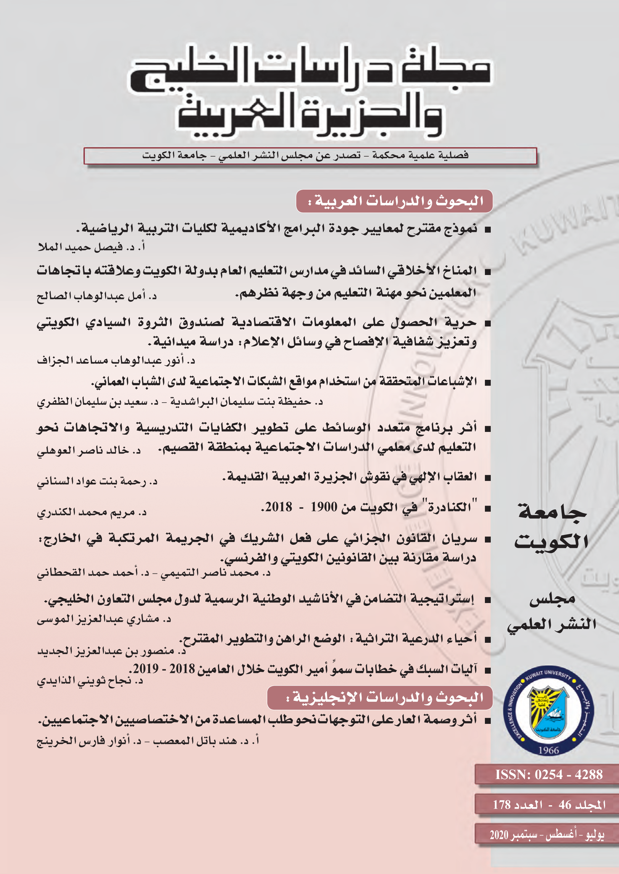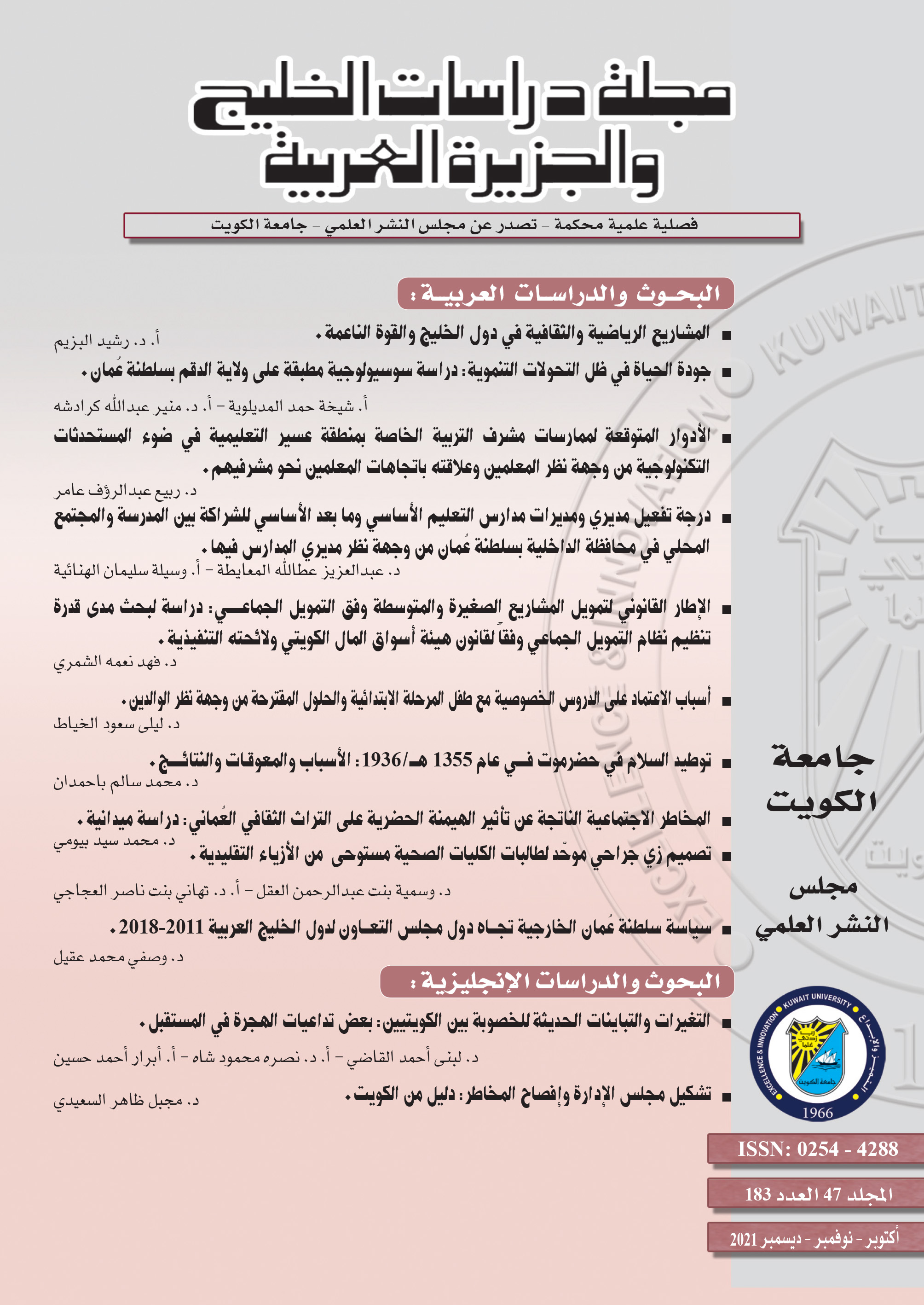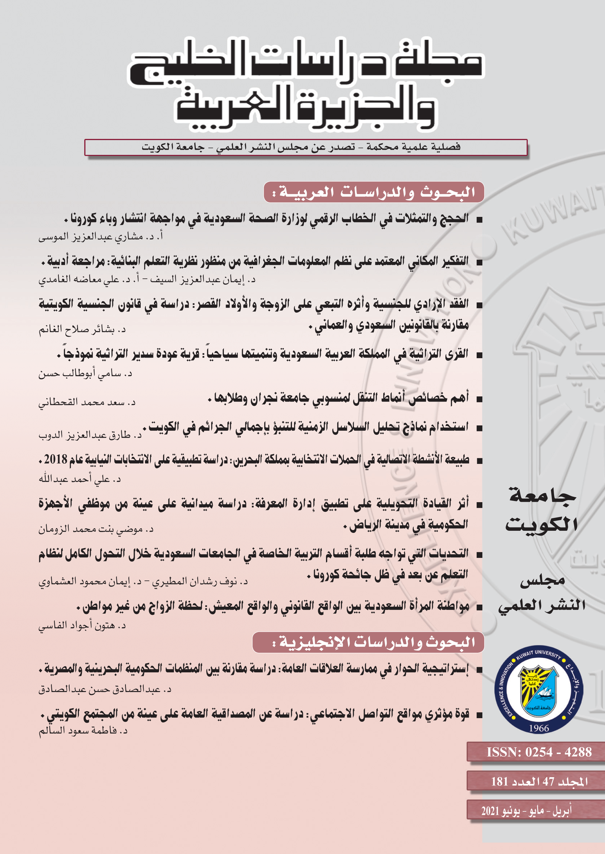 (*) رابط الموقع الجديد للمجلة: مجلة دراسات الخليج والجزيرة العربية (ku.edu.kw)