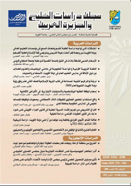 يأتي هذا العدد من المجلة ليواكب أحدث التطورات التكنولوجية وتأثيراتها في مختلف الميادين، مع التركيز على قضايا التعليم في دول الخليج العربي. ضمن هذه الرؤية، تبرز دراسة الناصري والنجار حول واقع استخدام المعلمين العمانيين لتطبيقات الذكاء الاصطناعي وصعوبات توظيفها. تسلط الدراسة الضوء على دور الذكاء الاصطناعي كرافدٍ حديث لتطوير العملية التعليمية. تعكس هذه الدراسة الاهتمام المتزايد بتوظيف الذكاء الاصطناعي في التعليم، سواء لتحسين طرق التدريس، أو لدعم المعلمين والطلاب على حد سواء. وتوضح الدراسة أن استخدام تطبيقات الذكاء الاصطناعي، على الرغم من وجود إمكانات كبيرة، ما زال يواجه صعوبات تتعلق بالبنية التحتية، ووعي المعلمين، وتدريبهم على المهارات اللازمة. فهذا الموضوع لا يعكس تحديات التعليم في سلطنة عمان فقط، بل يتسع ليشمل تطلعات دول الخليج العربي بأسرها نحو تعليم مستدام، قائم على الابتكار والتكنولوجيا في مجال التربية الخاصة تناولت دراسة العجمي والعجمي المشكلات التي تواجه دراسة الطلبة الصُّم وضعاف السمع في مؤسسات التعليم العالي بدولة الكويت من وجهات نظر مختلفة. كما تناولت دراسة العازمي والهلال مدى معرفة الخطة التربوية الفردية وتطبيقها، وماهيّة الأساليب التعليمية؛ كالمواءمة المستخدمة من قبل معلمي الرياضيات والعلوم للطلاب ذوي الإعاقة في مدارس التعليم العام. تسهم هاتان الدراستان في تعزيز الوعي بأهمية التعليم الشامل في تحقيق تكافؤ الفرص للطلاب ذوي الإعاقة، وتؤكدان الحاجة إلى بناء أنظمة تعليمية مرنة تدعم التنوع في البيئات المدرسية والجامعية.