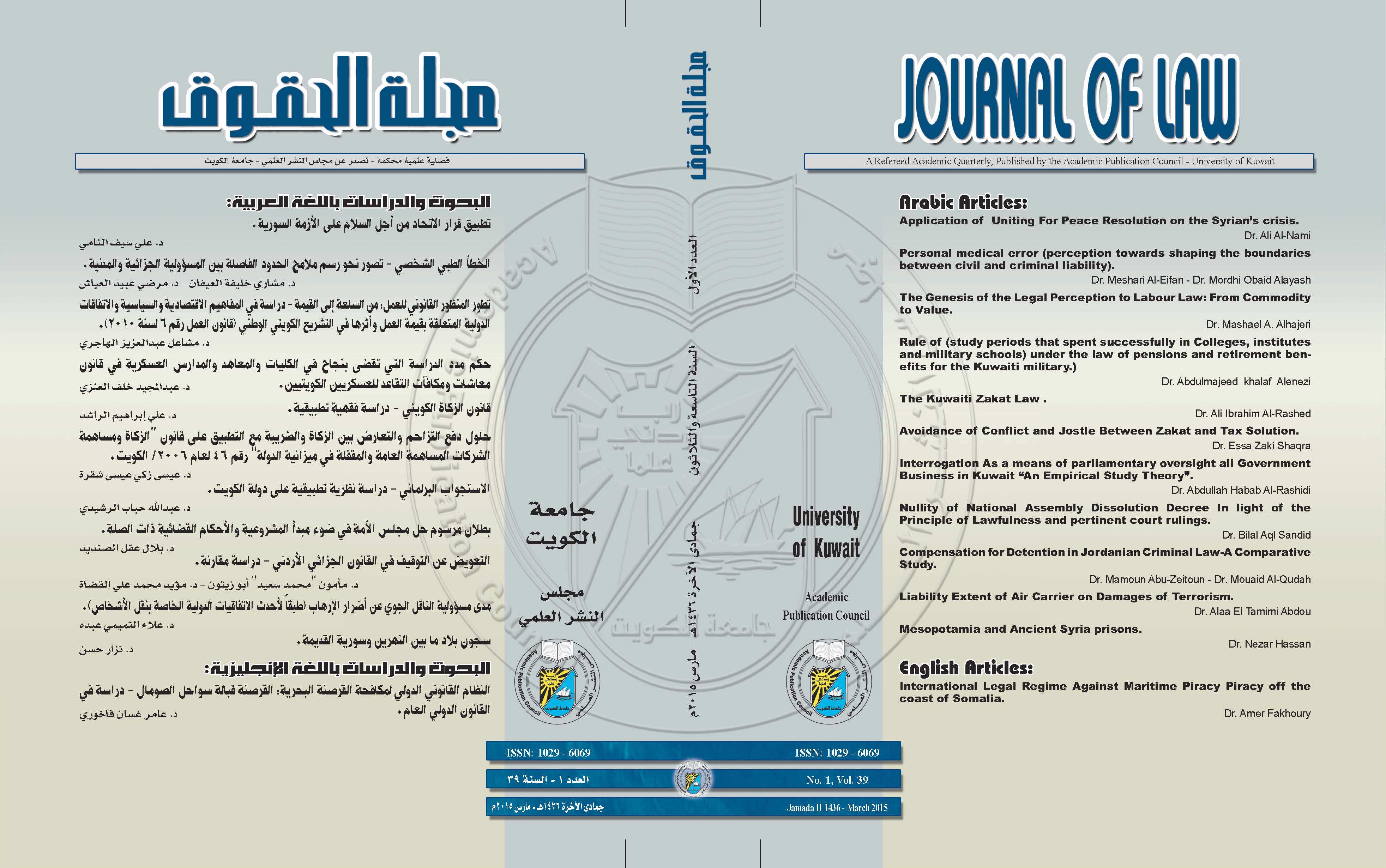 تعليق على حكم المحكمة الدستورية في الطلبين المقدمين برقم (6 و 31) لسنة 2012 "طعون خاصة بانتخابات مجلس الأمة عام 2012" الصادر بإبطال عملية الانتخابات برمتها، وحكم الدائرة الإدارية بالمحكمة الكلية الصادر بشأن القضية رقم (4722/2011 إداري 10) بعدم اختصاص المحكمة ولائياً بنظر الدعوى المرفوعة بطلب وقف مرسوم حل مجلس الأمة رقم (443) لسنة 2011 وما يترتب عليه من آثار على تقديم سمو رئيس مجلس الوزراء السابق الشيخ ناصر المحمد الصباح استقالة حكومته وصدور الأمر الأميري بقبولها، ثم صدور الأمر الأميري بتعيين سمو الشيخ جابر المبارك رئيساً جديداً للوزراء، قام الرئيس المكلّف بأداء القسم الدستوري، ومن ثم اجتمع الرئيس الجديد بوزراء الحكومة المستقيلة ليصدر مجلس الوزراء - المجتمع بهذه الصفة - قراراً بالموافقة على مرسوم حل مجلس الأمة الذي صدر فيما بعد عن حضرة صاحب السمو أمير الكويت بتاريخ 6/12/2011 برقم (443) لسنة 2011. هذه المجموعة من الأحداث المتسلسلة أثارت جدلاً سياسياً وقانونياً طرح على بساط البحث مسألة بطلان مرسوم حل مجلس الأمة سالف الذكر... ومما زاد الأمر تعقيداً وحساسية أن المرسوم المذكور ألحق، بتاريخ 19 ديسمبر 2011، بمرسوم آخر يحمل رقم (447) لسنة 2011 بدعوة الناخبين لانتخاب أعضاء مجلس الأمة، الأمر الذي نتج عنه ارتباطاً وثيقاً بين صحة المرسوم الأول من جهة، وصحة الانتخابات وما تؤول إليه من نتائج من جهة أخرى... هذا الواقع، طرح على بساط البحث صحة قيام حكومة تتألف من رئيس معيّن ووزراء مستقيلين من حكومة سابقة، بالموافقة على مشروع مرسوم حل مجلس الأمة. تصدت الدائرة الإدارية بالمحكمة الكلية لمرسوم حل مجلس الأمة المشار إليه، وأصدرت بتاريخ 5/1/2011 حكمها في القضية رقم (4722/2011 إداري 10) المرفوعة بطلب وقف هذا المرسوم وما يترتب عليه من آثار، حيث أعلنت عدم اختصاصها ولائياً بنظر الدعوى المرفوعة مستندة في ذلك بشكل رئيسي إلى أن مرسوم الحل وما تلاه من مراسيم وأوامر صدرت جميعها من أمير البلاد بعد عرضها من مجلس الوزراء على سموه، وهي إضافة إلى ما سبقها من قرارات تتعلق جميعها بأعمال السيادة. وفي اتجاه مختلفة، قضت المحكمة الدستورية، بتاريخ 20/11/2012، بإبطال عضوية جميع أعضاء مجلس الأمة للعام 2012 وعودة المجلس المنحل، وجاء هذا الحكم بعد قبول الطعون المقدمة في صحة مرسوم حل مجلس الأمة رقم (443) لسنة 2011. إن كلا الحكمين يبدوان في الظاهر بحالة تناقض، الأمر الذي يقود إلى البحث في مضمونهما وفي الأسباب القانونية التي أٌسسا عليها، ولفهم المنحى الذي انتهجته المحكمتان، ألقت الدراسة بالتعليق عليهما بعض الضوء على نظرية "الأعمال الحكومية" بمحاولة لاستحضار واستذكار ركائزها القانونية. فبعد استعراض أبرز حيثيات حكم الدائرة الإدارية (المبحث الأول)، وحكم المحكمة الدستورية (المبحث الثاني)، اقتضى الأمر التعريف "بمبدأ المشروعية" من حيث المفهوم والدلالات والمصادر (المبحث الثالث)، ومن ثم بيان الاستثناءات عليه ومن أبرزها "الأعمال الحكومية" (المبحث الرابع)، وخلص التعليق إلى تشريح مرسوم الحل وموقف القضاء منه وإلقاء الضوء على رأي الفقه بشأنه (المبحث الخامس).