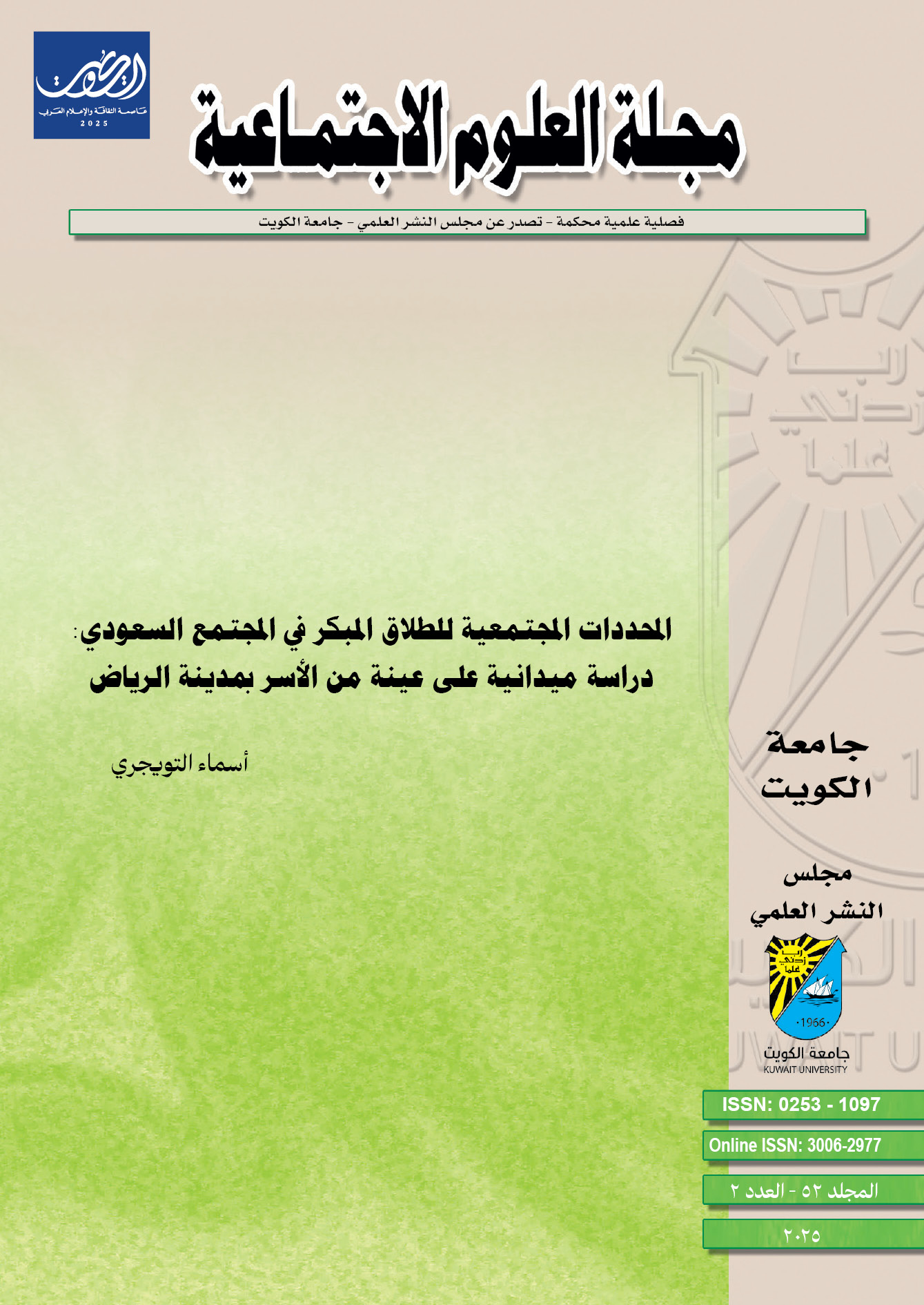 المحددات المجتمعية للطلاق المبكر في المجتمع السعودي: دراسة ميدانية على عينة من الأسر بمدينة الرياض